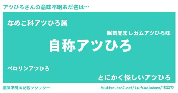 | 男性向けラノベタイトル風あだ名 | 『Re:アツひろから始める異世界生活』 |