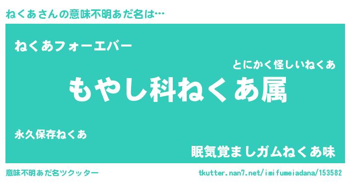 | ヒーロー風カッコイイあだ名 | 『ウルトラねくあマン』『愛の使者ねくあ』 |