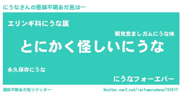 | 女子向けラノベタイトル風あだ名 | 『にうなは平凡を望む』『にうな恋絵巻』 |