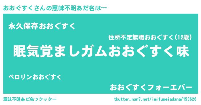 | 男性向けラノベタイトル風あだ名 | 『ノーゲーム・ノーオオグスク』 |