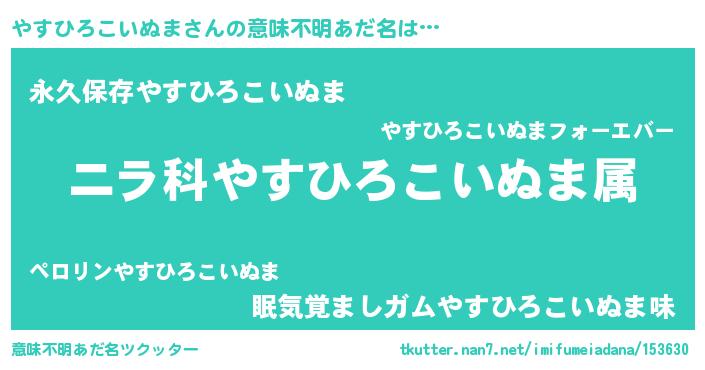 | 欧米人風あだ名 | 『やすひろこいぬま・ステッグマイヤー』 |