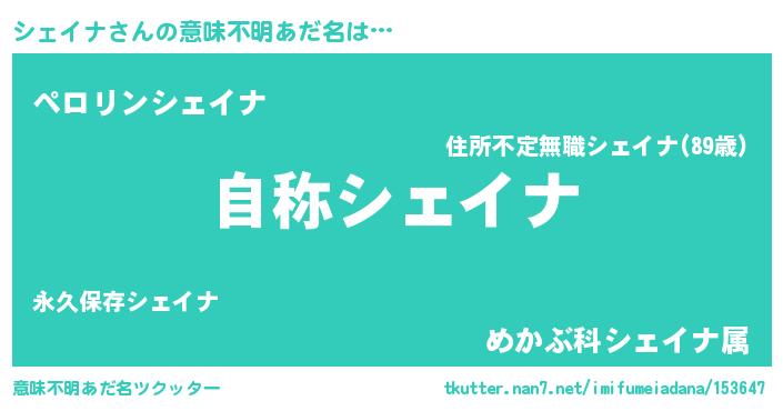 | ヘコむあだ名 | 『シェっふぃ~』『シェイナ(小並感)』 |