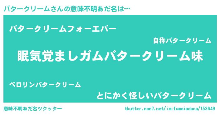 | 男性向けラノベタイトル風あだ名 | 『はたらくバタークリームさま!』 |