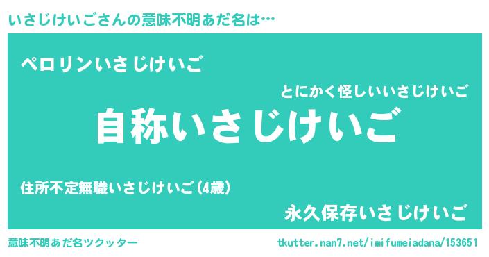 | 男性向けラノベタイトル風あだ名 | 『Re:いさじけいごから始める異世界生活』 |