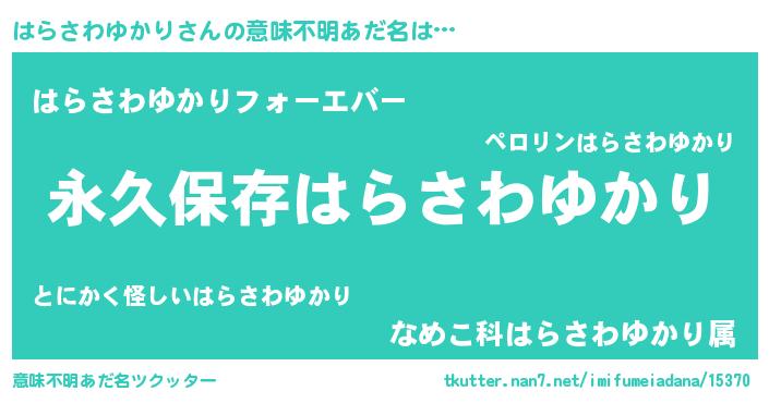 | 胡散臭い通販商品みたいなあだ名 | 『絶対に幸福をもたらす水素水…その名も「はらさわゆかり」』 |