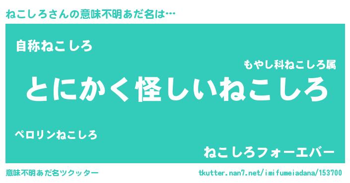 | 女子向けラノベタイトル風あだ名 | 『ねこしろ様がみてる』『闇のねこしろ』 |