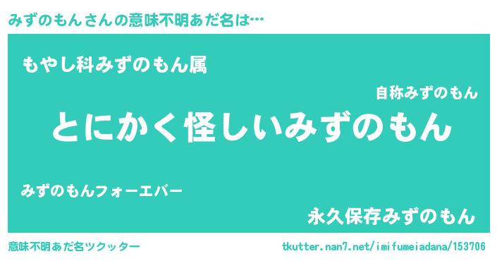 | 女子向けラノベタイトル風あだ名 | 『みずのもんは平凡を望む』 |