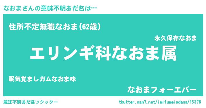 | 男性向けラノベタイトル風あだ名 | 『ナオマスレイヤー』『魔弾の王となおま』 |