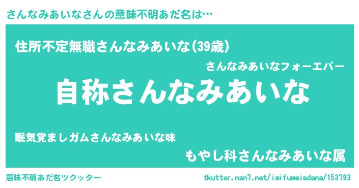 | ヒーロー風カッコイイあだ名 | 『最強戦士サンナミアイナ』 |