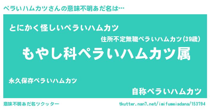 | ヘコむあだ名 | 『ペラっ子』『ペラいハムカツ(震え声)』 |