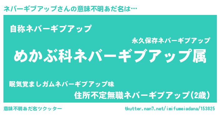 | 欧米人風あだ名 | 『トリンドルネバーギブアップ』 |