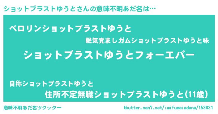 | 男性向けラノベタイトル風あだ名 | 『やはりショットブラストゆうとの青春ラブコメはまちがっている 』 |
