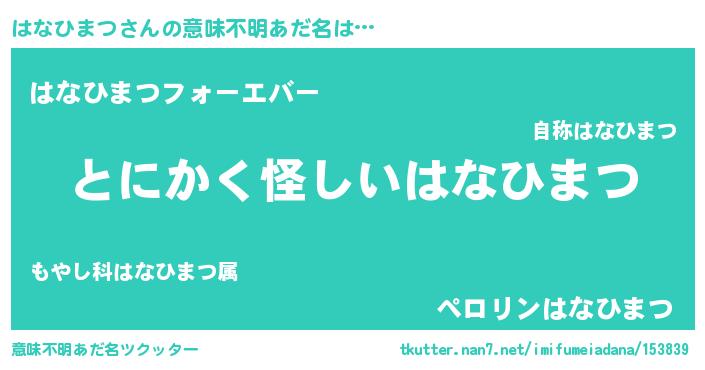 | 女子向けラノベタイトル風あだ名 | 『はなひまつ様がみてる』 |