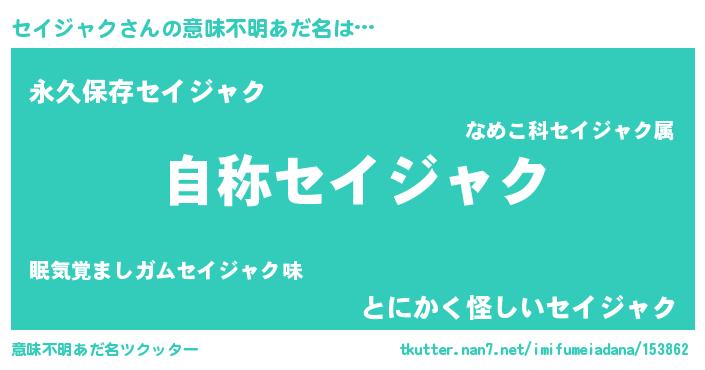 | ヘコむあだ名 | 『セイジャク(笑)』『セイお』『豆乳』 |