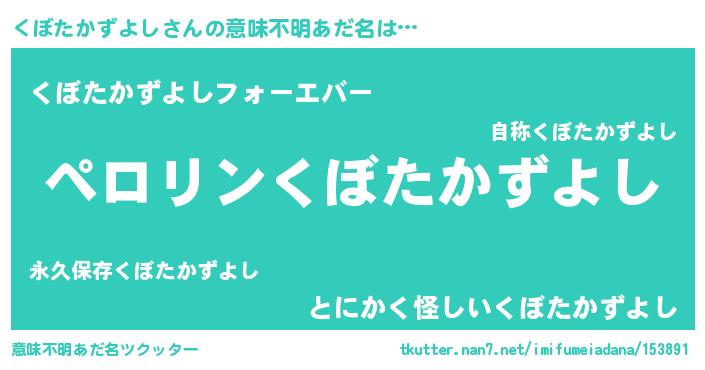 | ヒーロー風カッコイイあだ名 | 『スーパークボタカズヨシ』 |