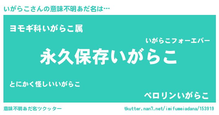 | ヒーロー風カッコイイあだ名 | 『ネオイガラコ』『スーパーイガラコ』 |