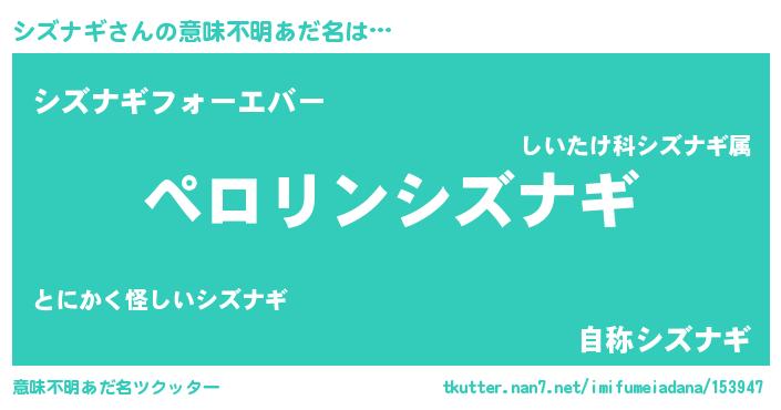 | ヒーロー風カッコイイあだ名 | 『スーパーシズナギ』『黄金騎士シズ』 |