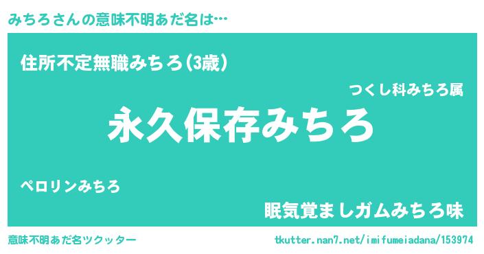 | 女子向けラノベタイトル風あだ名 | 『異世界で失敗しない100のみちろ』 |