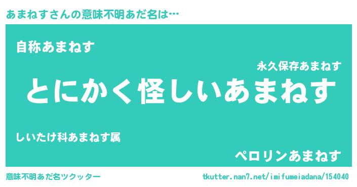 | 胡散臭い通販商品みたいなあだ名 | 『全米が絶賛したサプリメント…その名も「あまねす」』 |