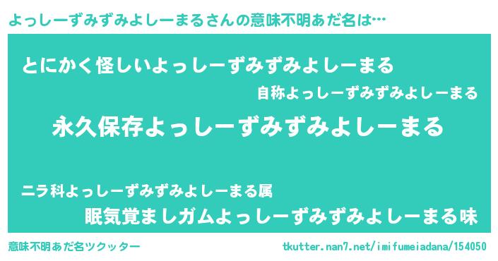 | 男性向けラノベタイトル風あだ名 | 『よっしーずみずみよしーまるという概念が存在しない退屈な世界 』 |
