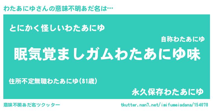 | 男性向けラノベタイトル風あだ名 | 『おまえをオタクにしてやるから、俺をわたあにゆにしてくれ! 』 |