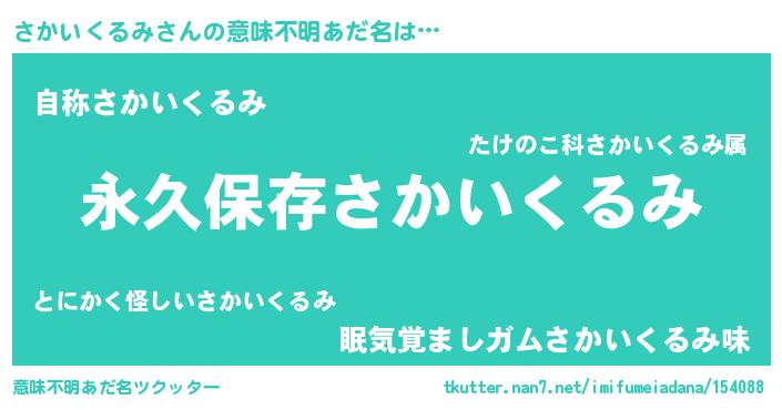 | 胡散臭い通販商品みたいなあだ名 | 『来世でも幸せになれる水素水…その名も「さかいくるみ」』 |