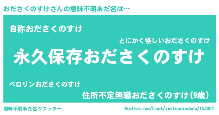 | 男性向けラノベタイトル風あだ名 | 『おださくのすけという概念が存在しない退屈な世界 』 |