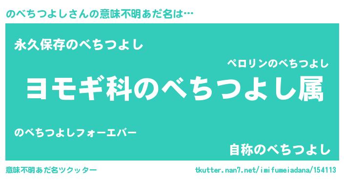 | 男性向けラノベタイトル風あだ名 | 『のべちつよし~年齢イコール彼女いない歴の魔法使い~』 |