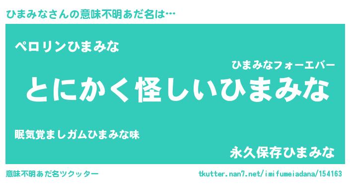 | 恥ずかしいあだ名 | 『ヒマリンリン』『プリティーひまみな』 |