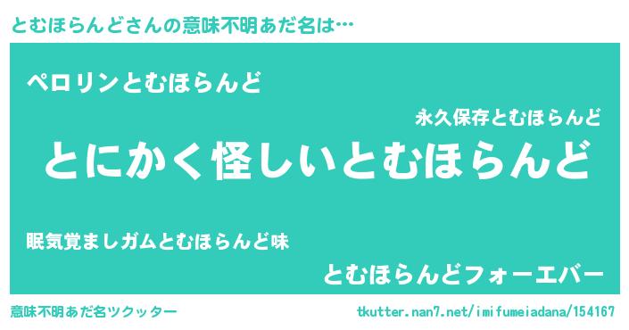 | ヘコむあだ名 | 『とむお』『とむっふぃ~』 |