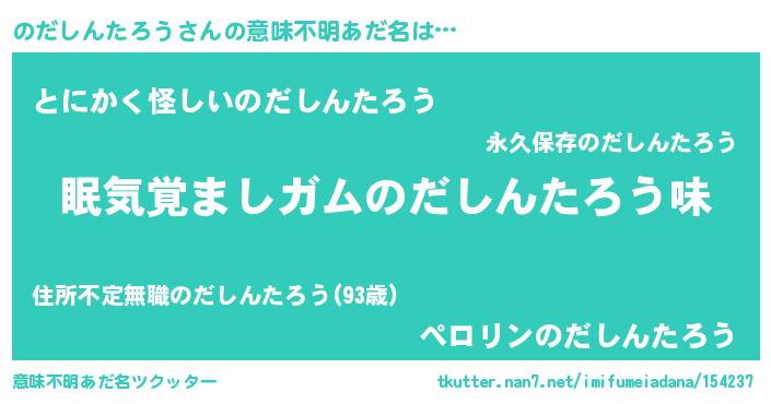 | 男性向けラノベタイトル風あだ名 | 『ノーゲーム・ノーノダシンタロウ』 |