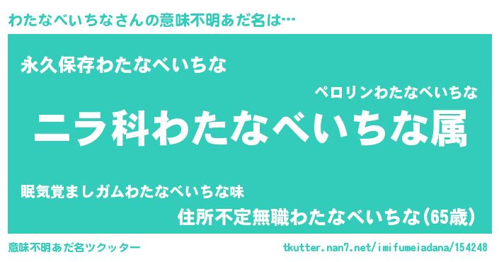| 胡散臭い通販商品みたいなあだ名 | 『前代未聞の健康食品…その名も「わたなべいちな」』 |