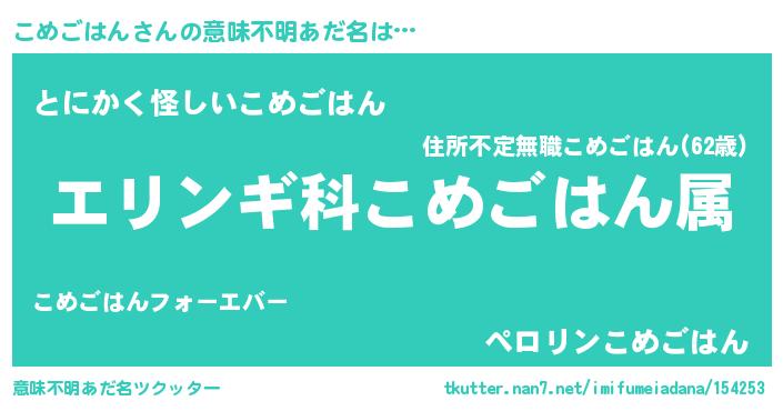 | 男性向けラノベタイトル風あだ名 | 『コメゴハンスレイヤー』 |