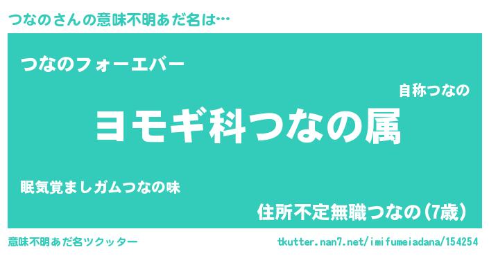 | 男性向けラノベタイトル風あだ名 | 『つなの~年齢イコール彼女いない歴の魔法使い~』 |