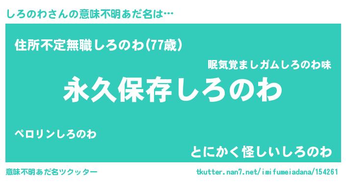 | 男性向けラノベタイトル風あだ名 | 『しろのわという概念が存在しない退屈な世界 』 |