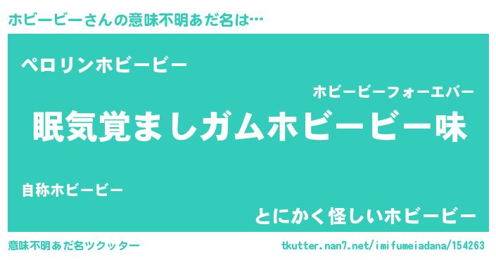| ヘコむあだ名 | 『ホビもー』『ホビ太郎』『つくし』 |