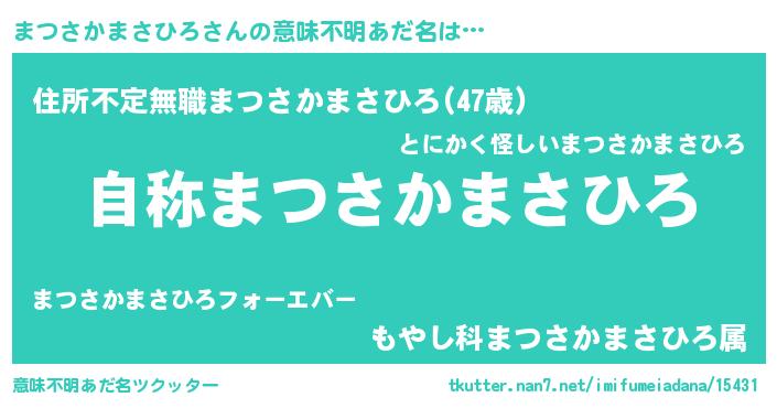 | 肩書あだ名 | 『まつさかまさひろ閣下』 |