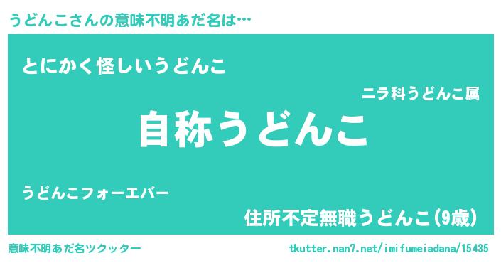 | 男性向けラノベタイトル風あだ名 | 『Re:うどんこから始める異世界生活』 |