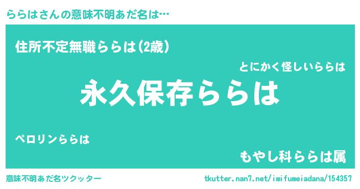 | ヘコむあだ名 | 『ららは(爆)』『ららっ子』 |