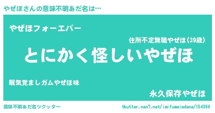 | 女子向けラノベタイトル風あだ名 | 『やぜほは平凡を望む』『やぜほ恋絵巻』 |