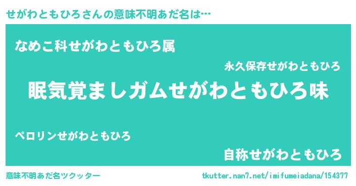 | ヘコむあだ名 | 『せがわともひろ(笑)』『せがにー』 |