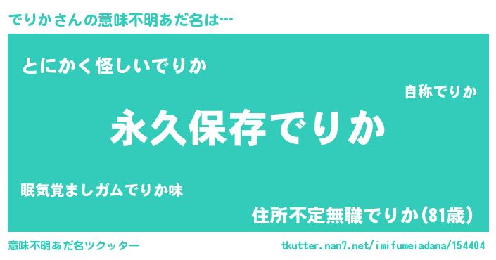 | 男性向けラノベタイトル風あだ名 | 『でりかという概念が存在しない退屈な世界 』 |