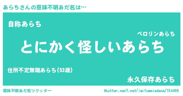 | ヘコむあだ名 | 『あらっぺ』『あらち(小並感)』 |