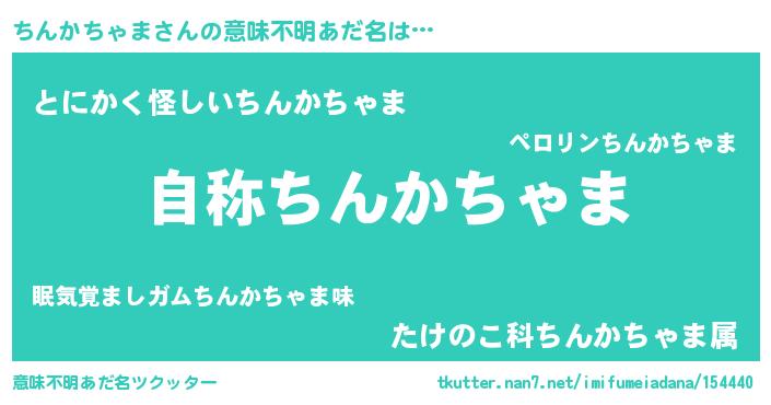 | 女子向けラノベタイトル風あだ名 | 『ちんかちゃまなんてお断りですっ。』 |
