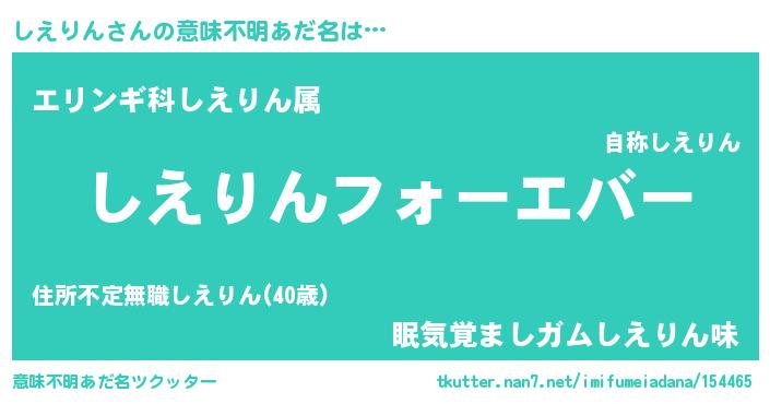 | 欧米人風あだ名 | 『しえりんクリステル』 |