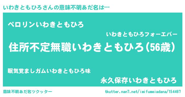 | ヘコむあだ名 | 『いわにゅー』『いわきともひろ(爆)』 |