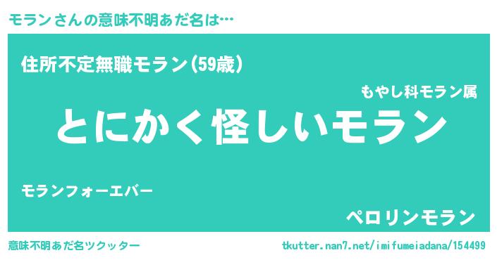 | 欧米人風あだ名 | 『ウサインモラン』『ダレノガレモラン』 |