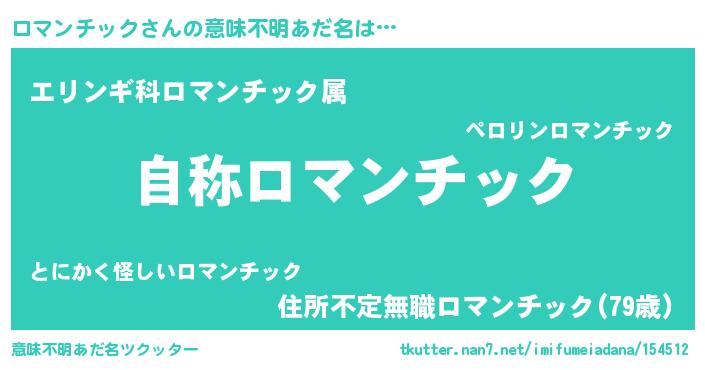 | ヒーロー風カッコイイあだ名 | 『究極戦士ロマンチック』『仮面ロマダー』 |