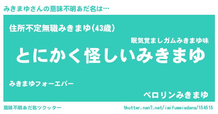 | 胡散臭い通販商品みたいなあだ名 | 『信頼と実績のネックレス…その名も「みきまゆ」』 |