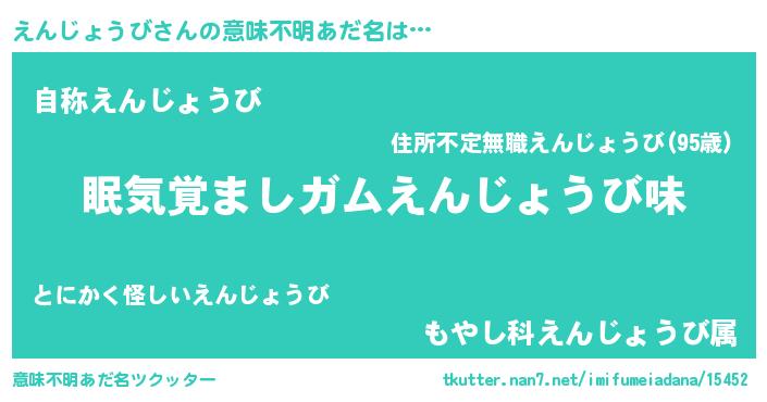 | ヘコむあだ名 | 『えん太郎』『えんじょうび(笑)』 |